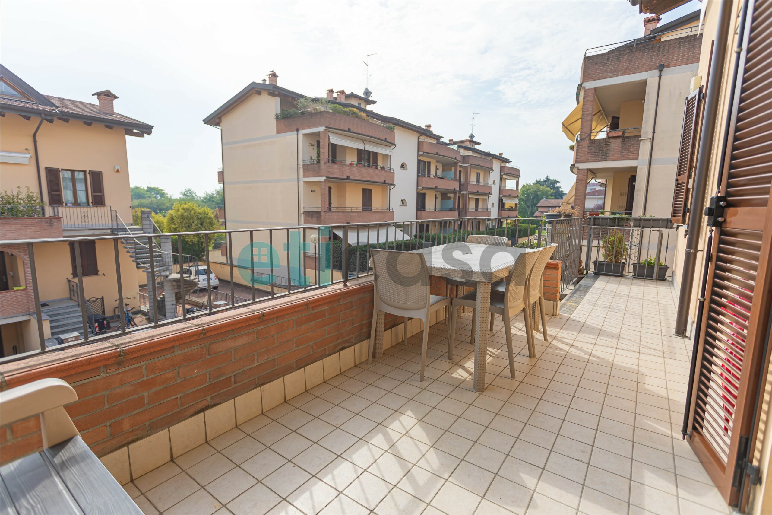 Ad accoglierci troviamo un ampio terrazzo privato 🪴 ideale per pranzi, cene o momenti di relax, con tenda parasole per garantire privacy e comfort. All’interno:
