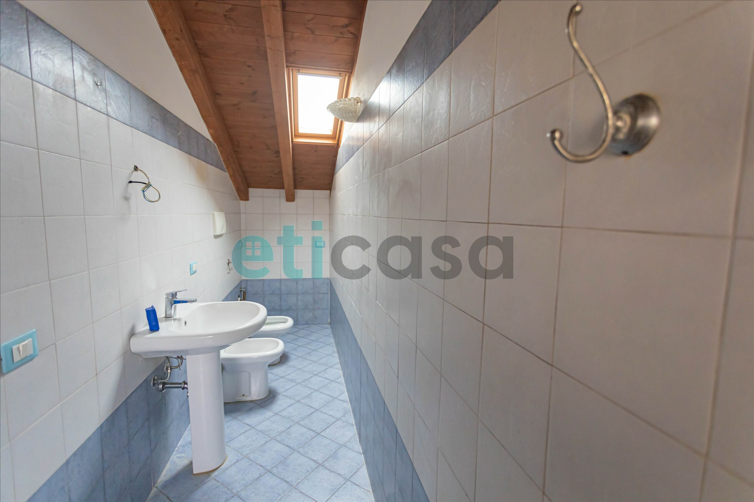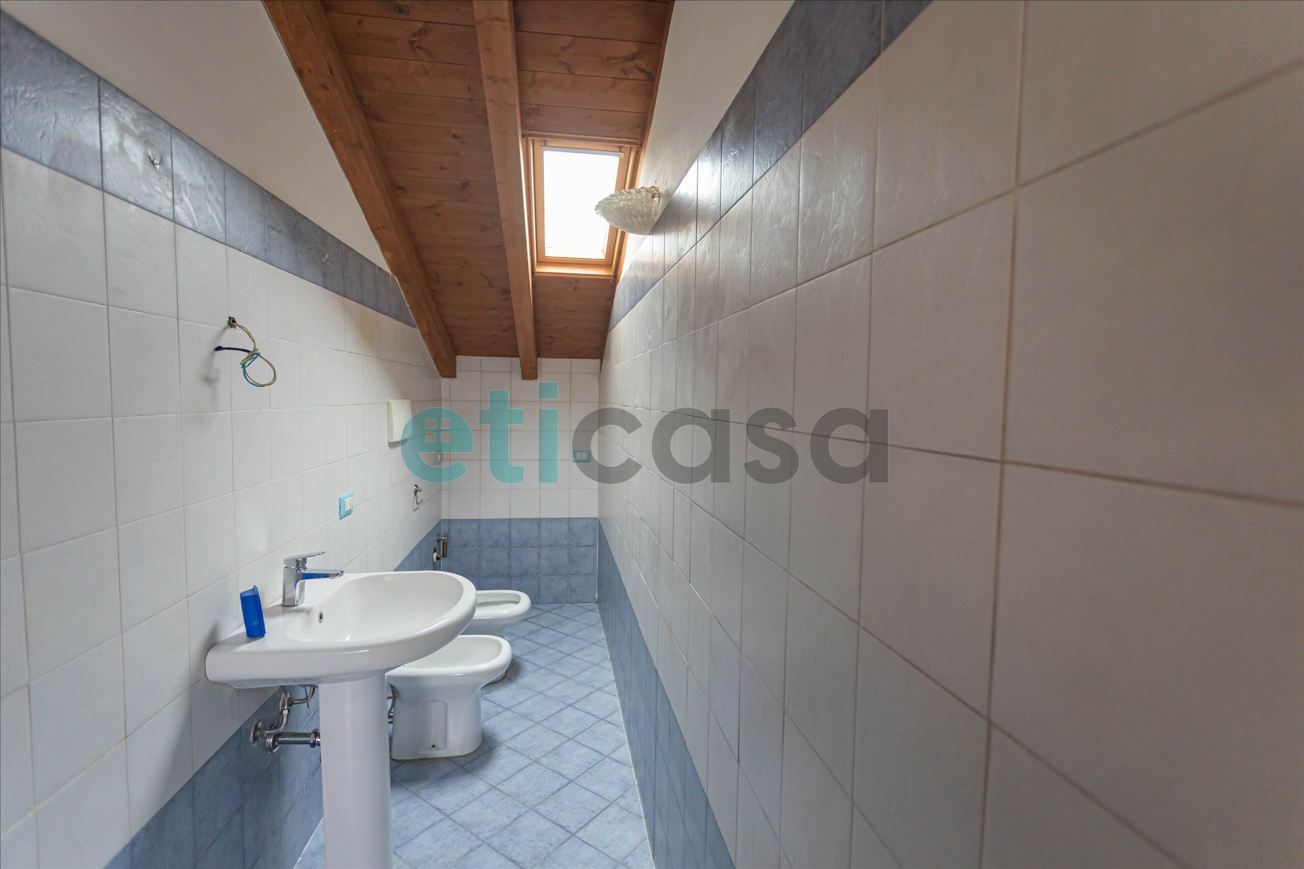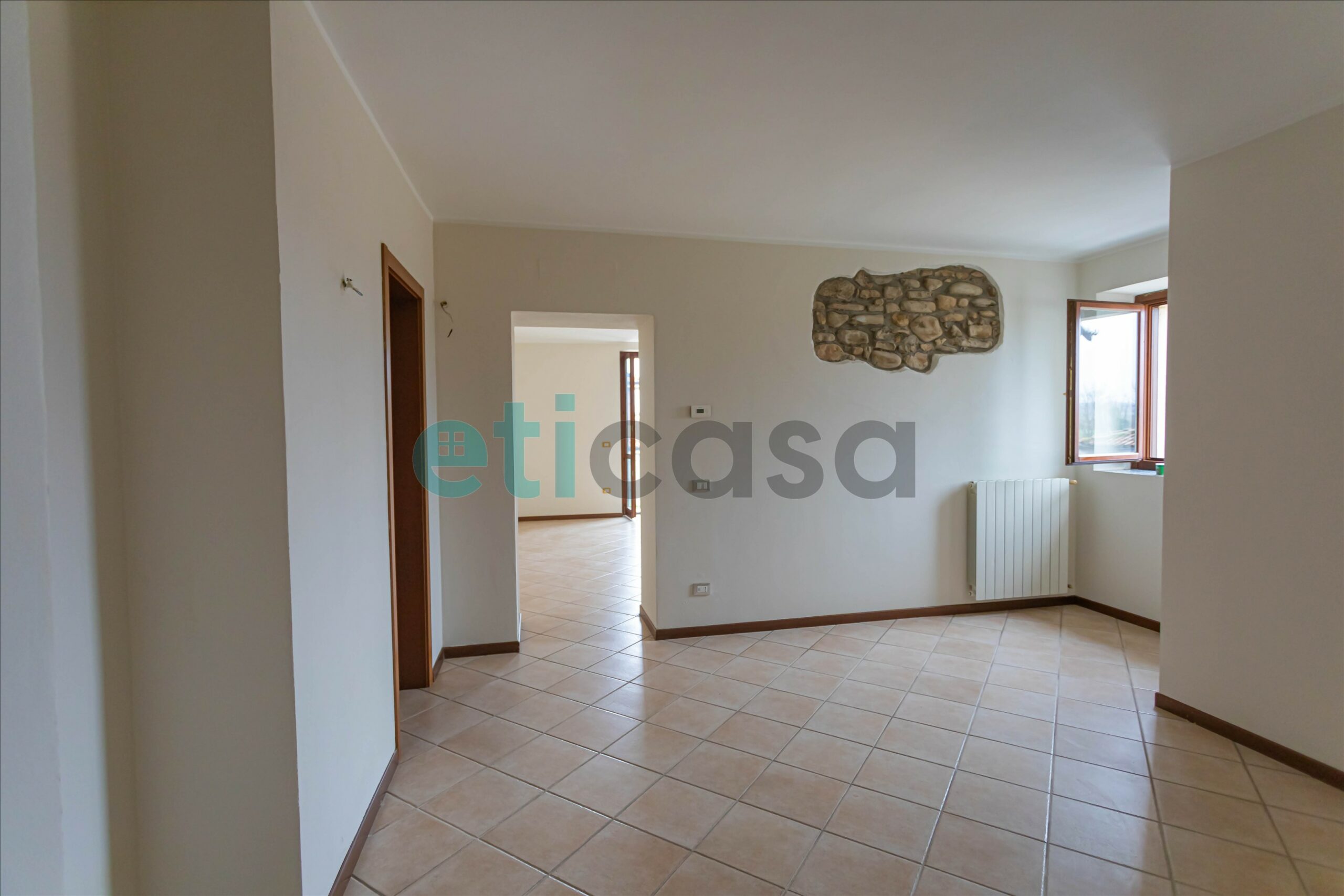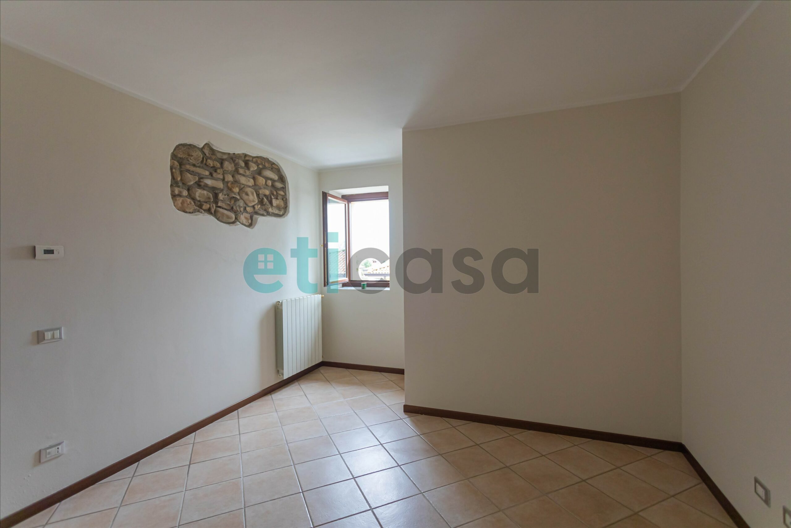 L’ingresso conduce a una cucina abitabile di generose dimensioni, con accesso al balcone, separata dal soggiorno, luminoso e ben proporzionato. Il bagno è finestrato, con vasca da bagno. La camera da letto matrimoniale, ampia e confortevole, è impreziosita da pavimento in parquet e soffitto con travi a vista, che donano calore e carattere all’ambiente.