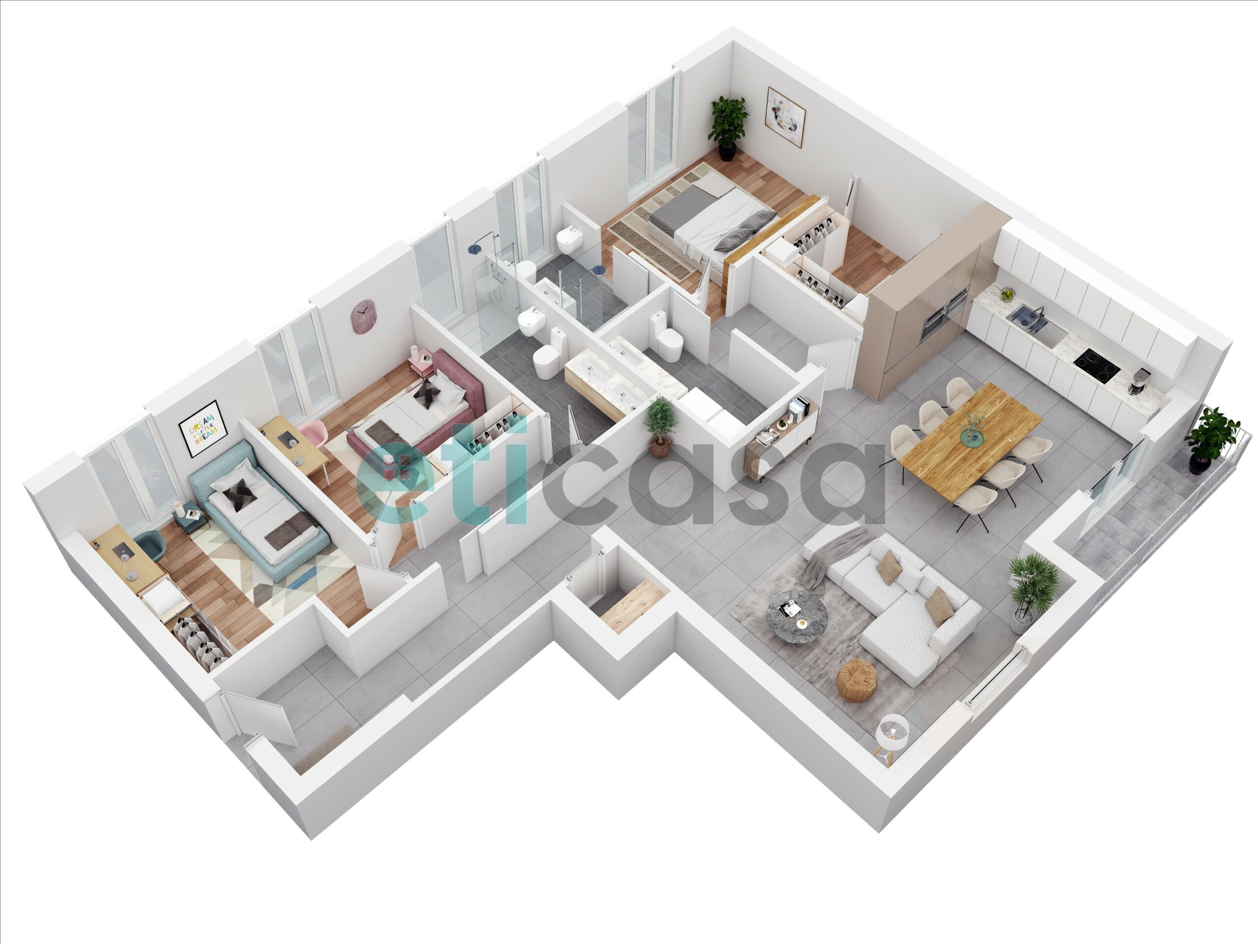 • tre camere da letto ben