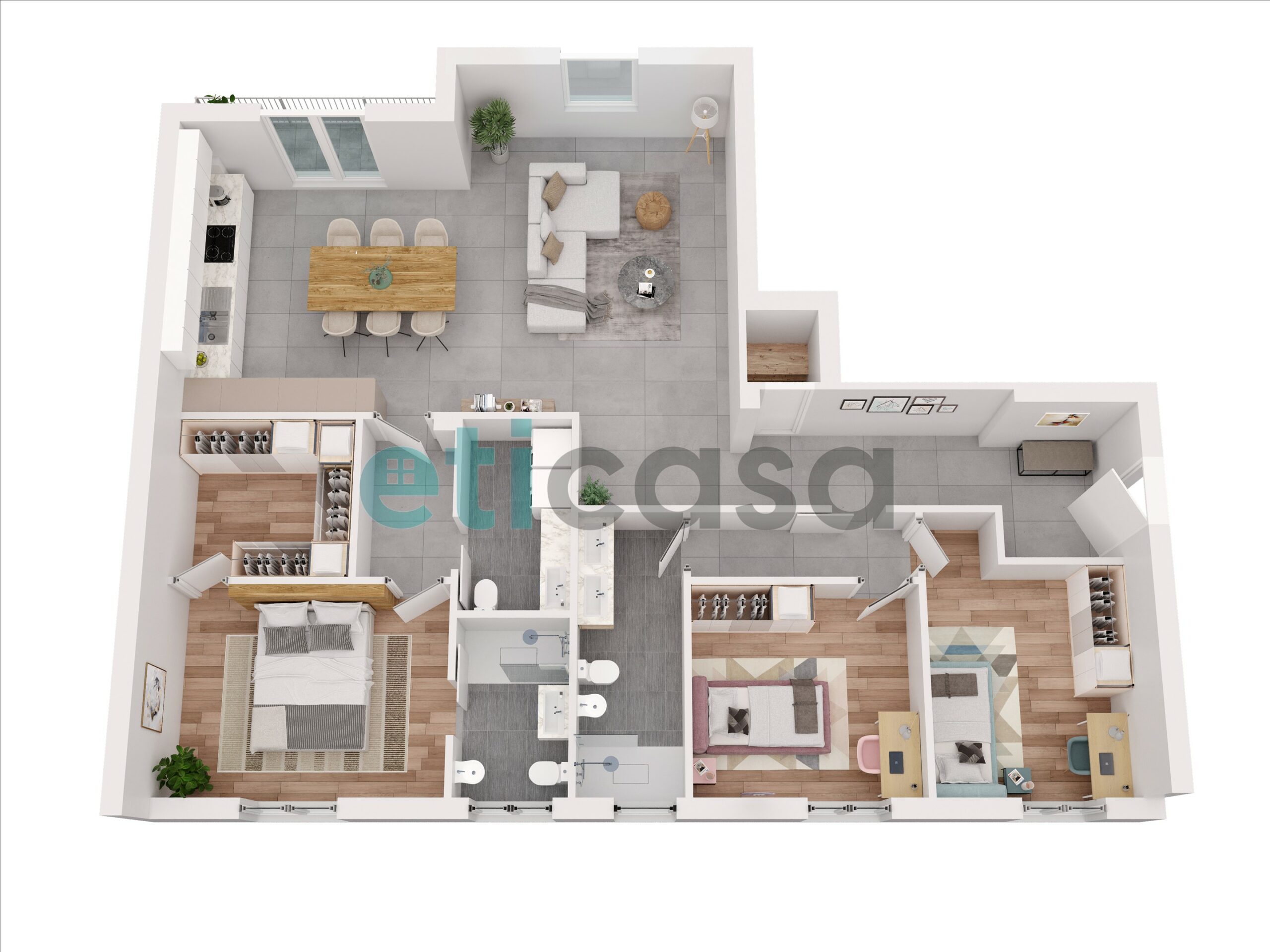 zona giorno e uno sulla zona notte garantiscono luminosità e spazi esterni