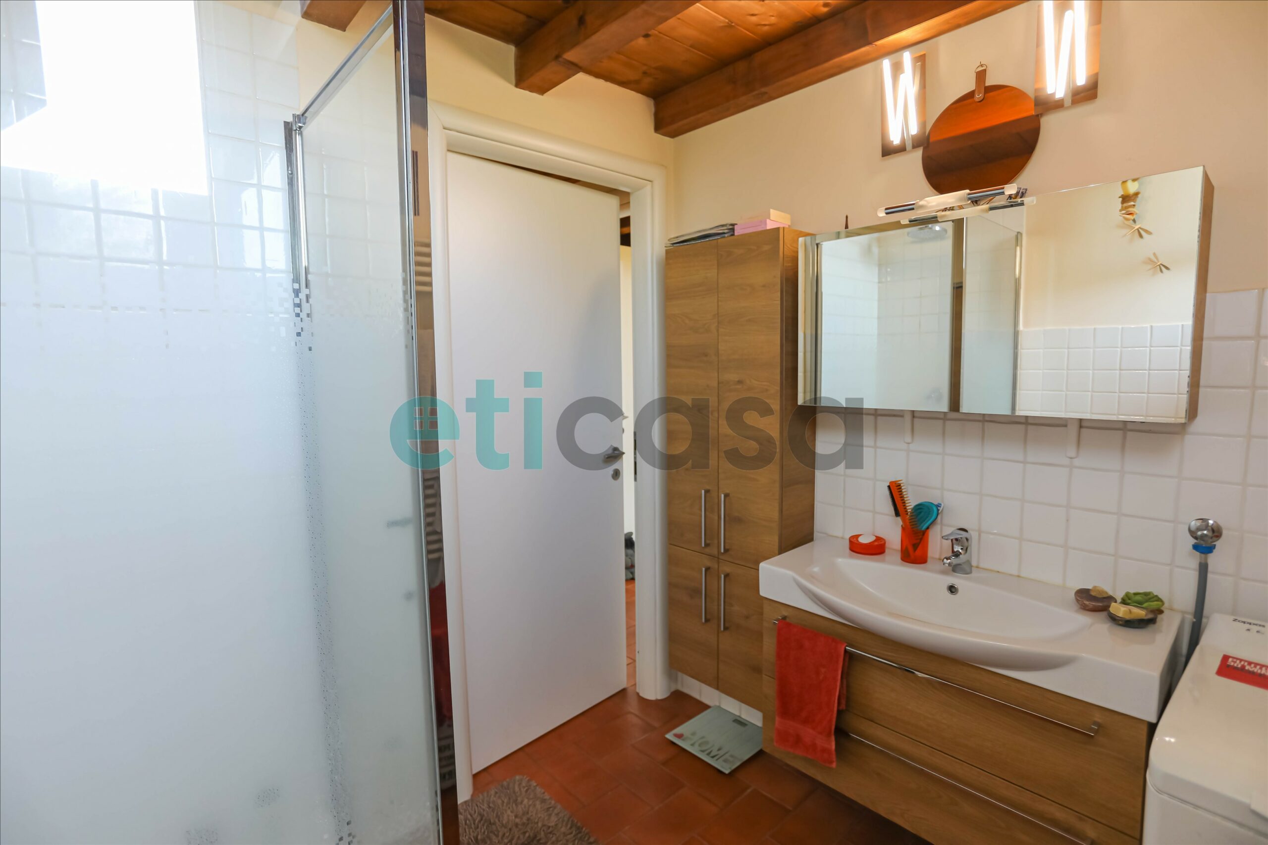 🚪 Al primo piano, collegato da una scalinata in pietra, si sviluppa la zona notte con bagno finestrato con doccia, una camera singola e una spaziosa camera matrimoniale con cabina armadio. Gli ambienti sono tutti molto luminosi grazie alle grandi finestre.