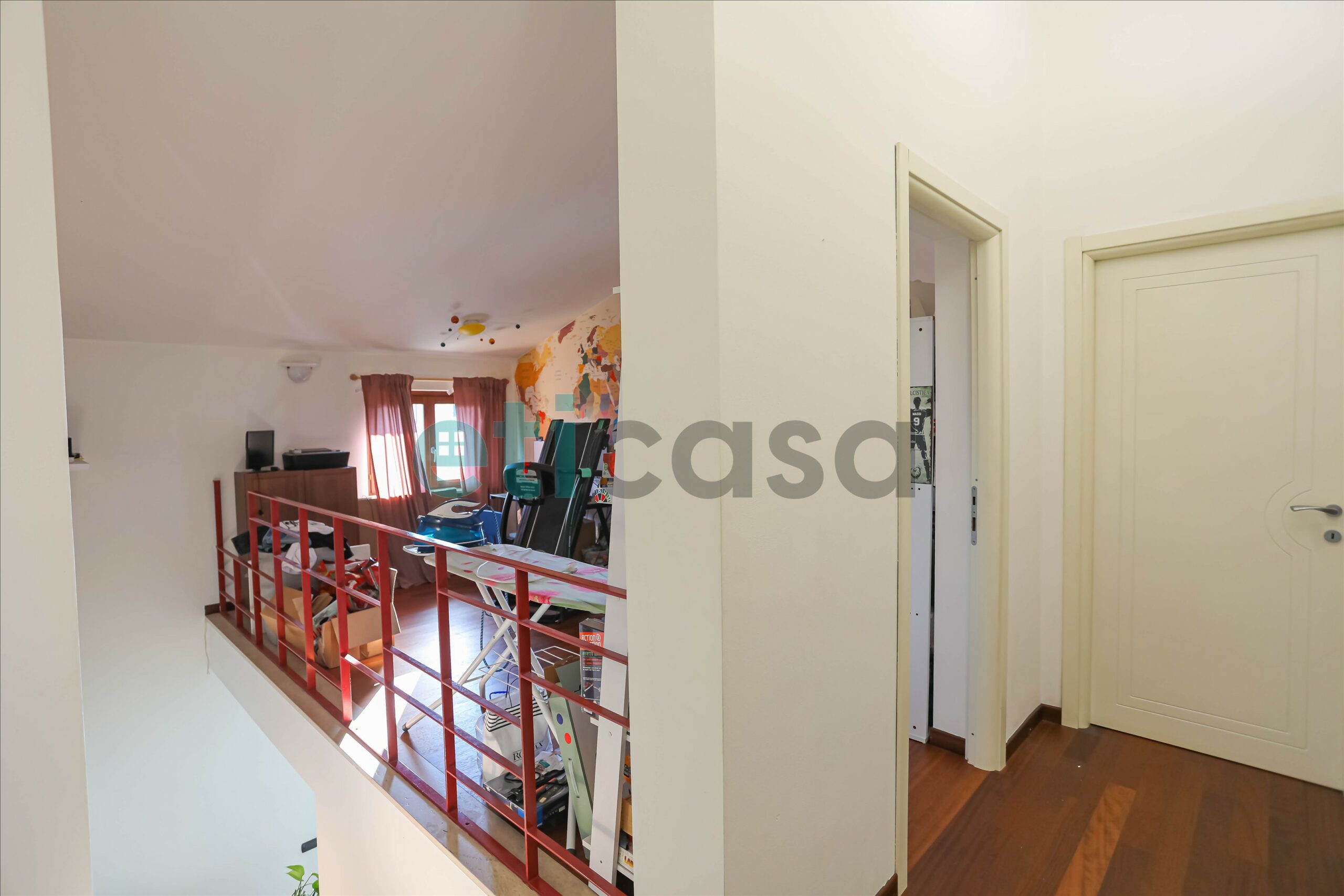 Salendo al piano superiore troviamo la zona notte, composta da due bagni entrambi finestrati, un comodo angolo studio, una camera doppia e una camera matrimoniale. Entrambe le camere hanno accesso a un ampio balcone, mentre la matrimoniale è impreziosita da una cabina armadio.