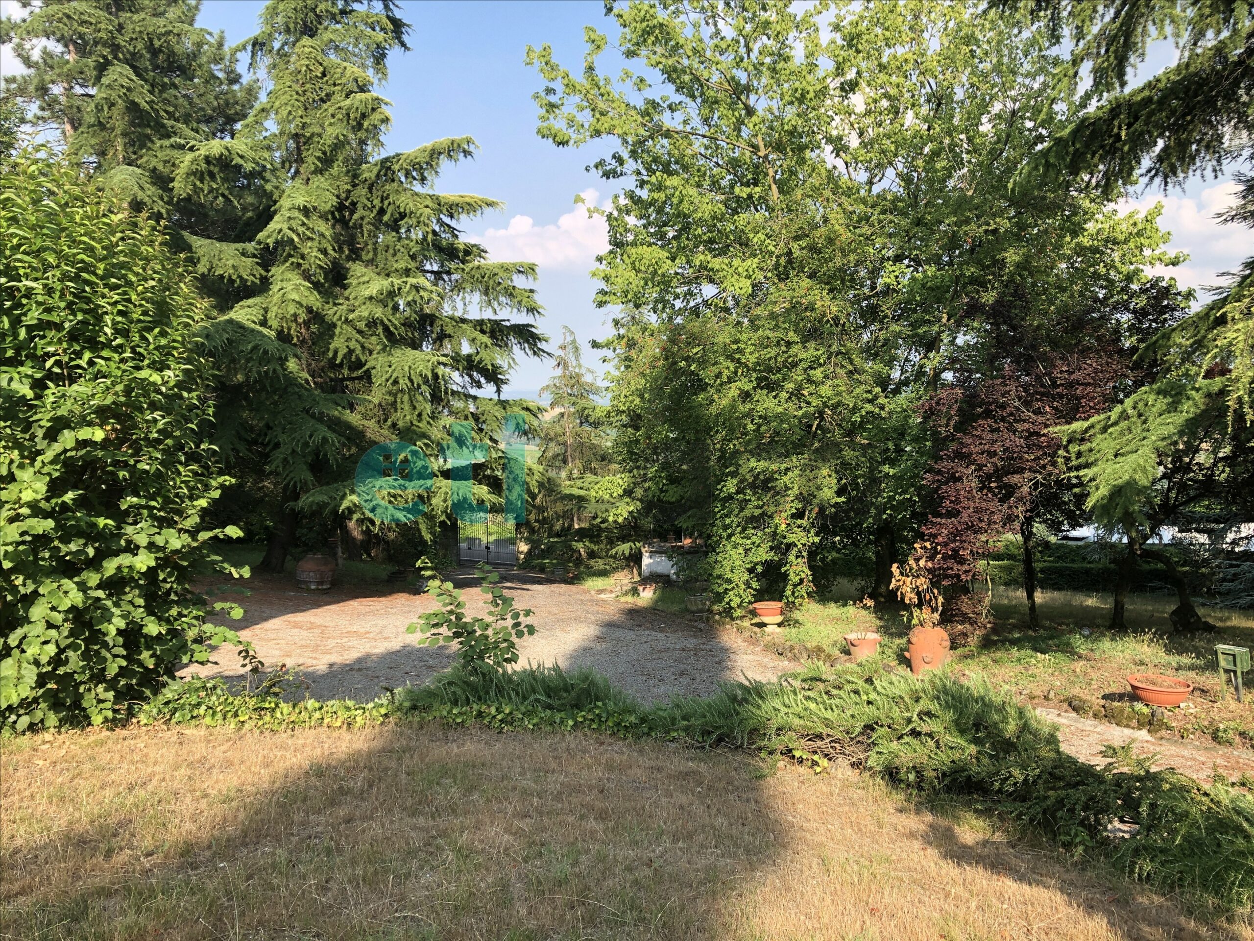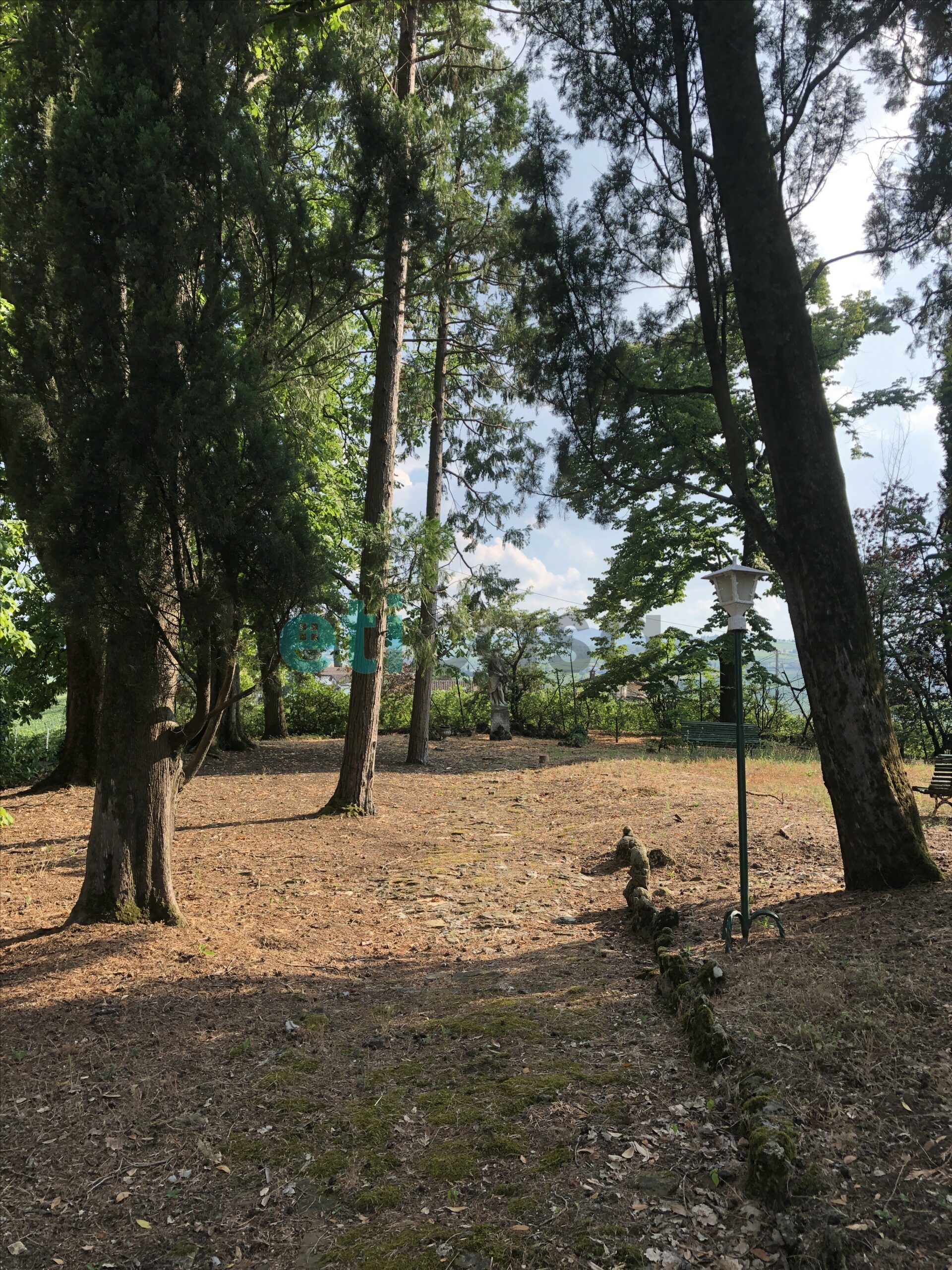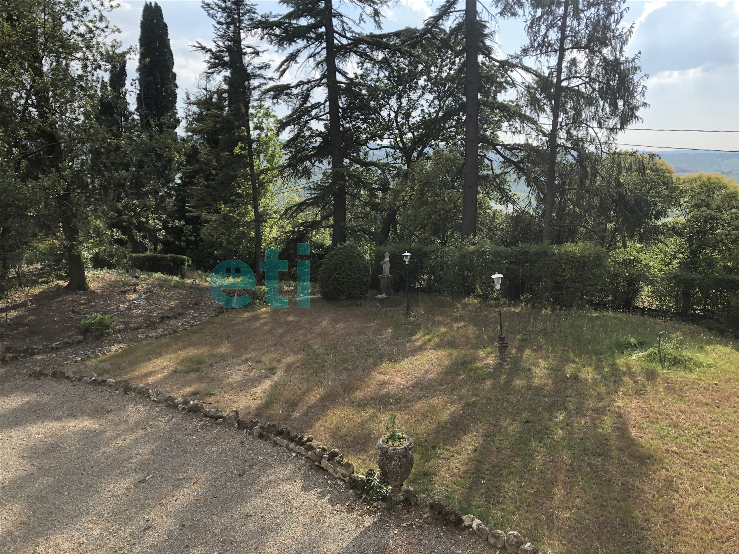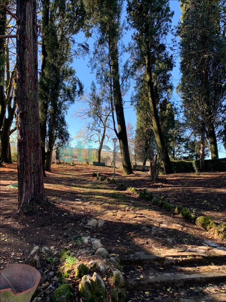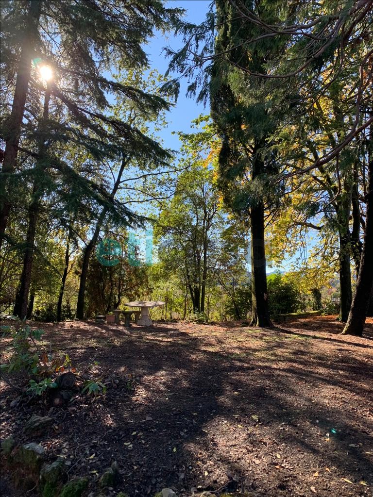 L’edificio, nato come antica posta di cavalli, conserva un’aura storica che dialoga con gli oltre 700 mq di superficie distribuiti su quattro livelli. Intorno, più di 5.600 mq di parco con alberi imponenti e un punto panoramico naturale che domina la valle.