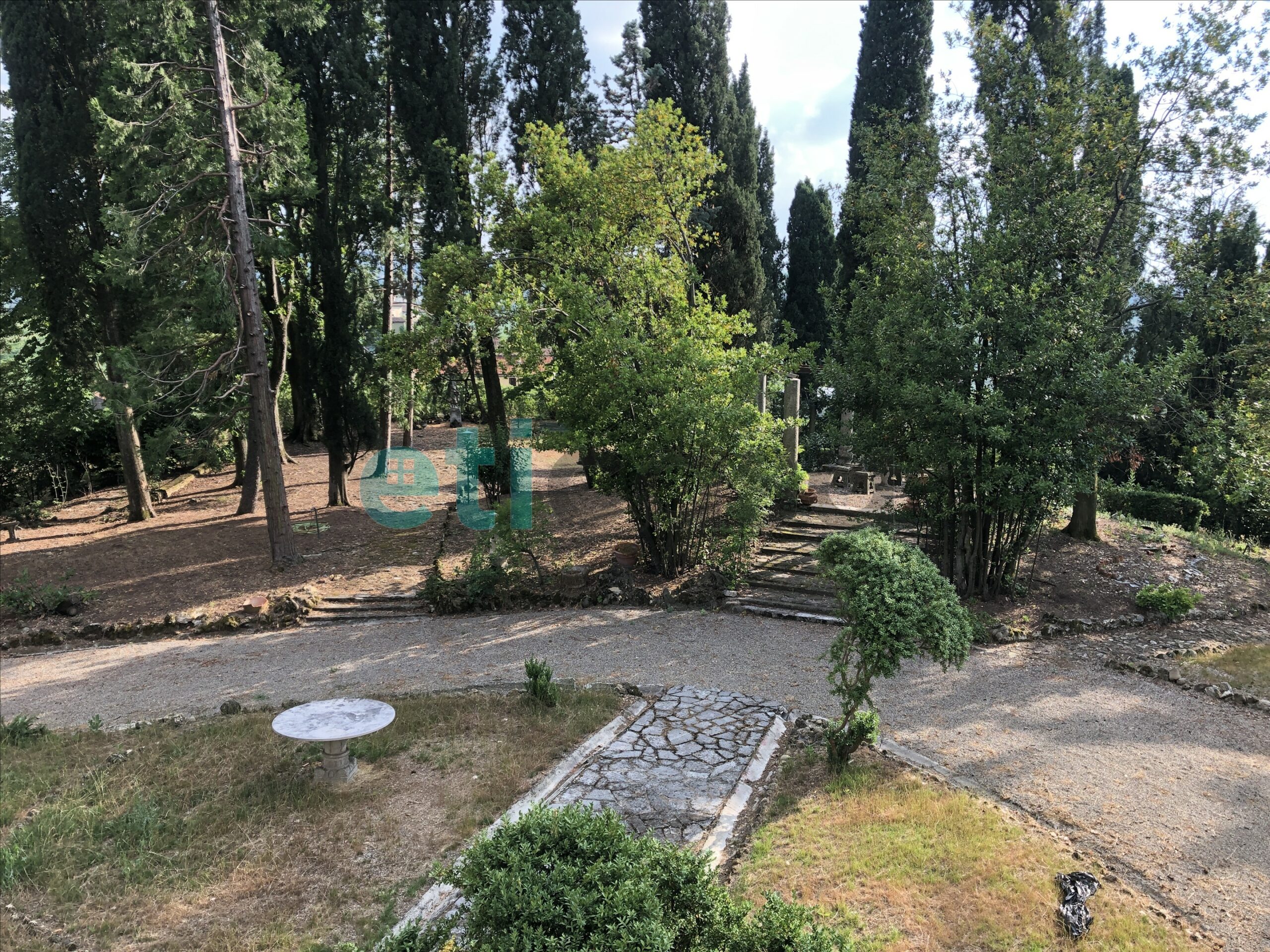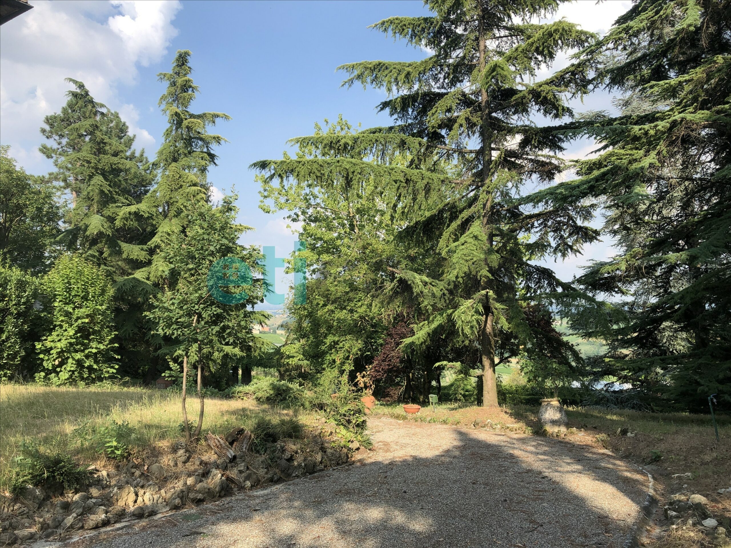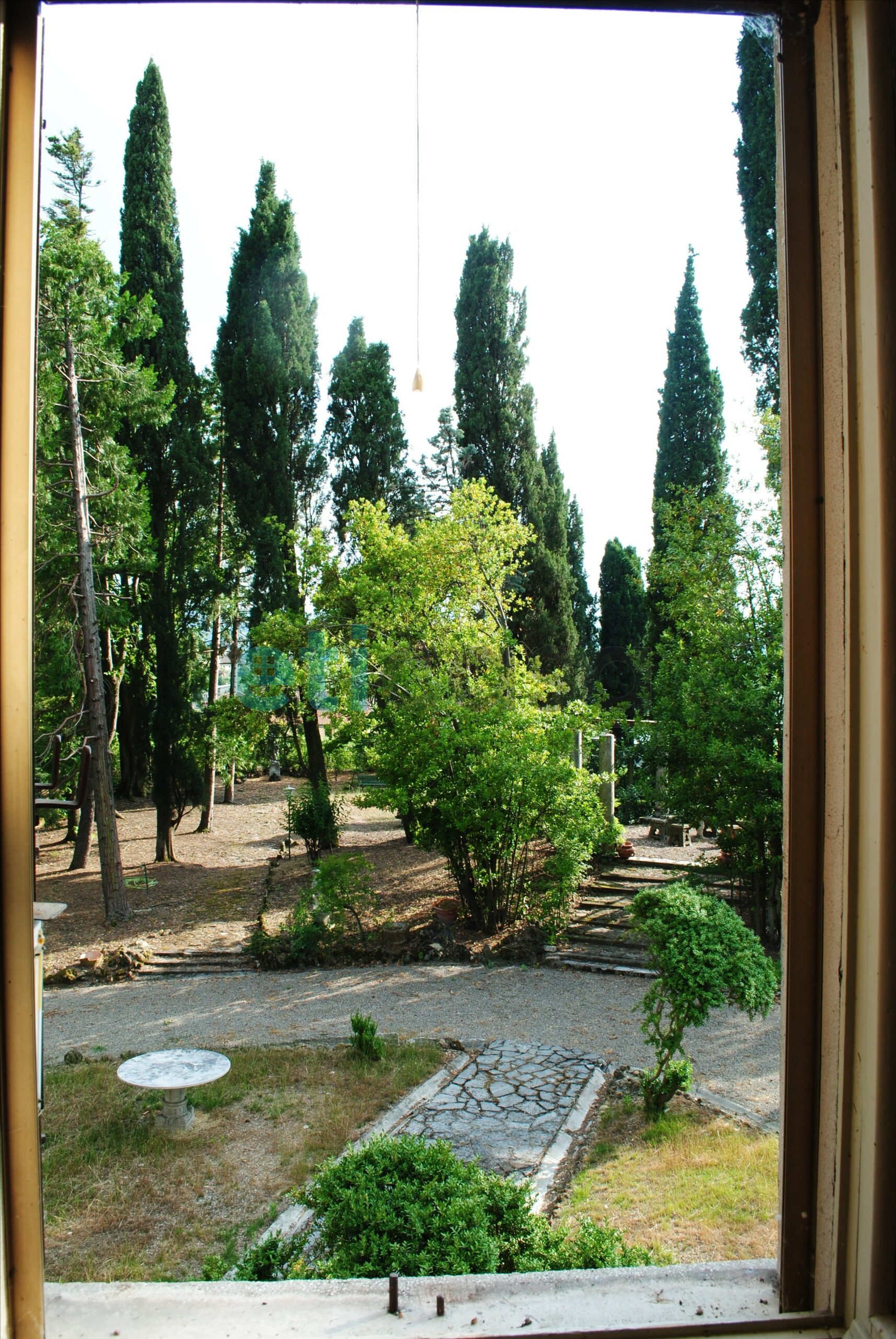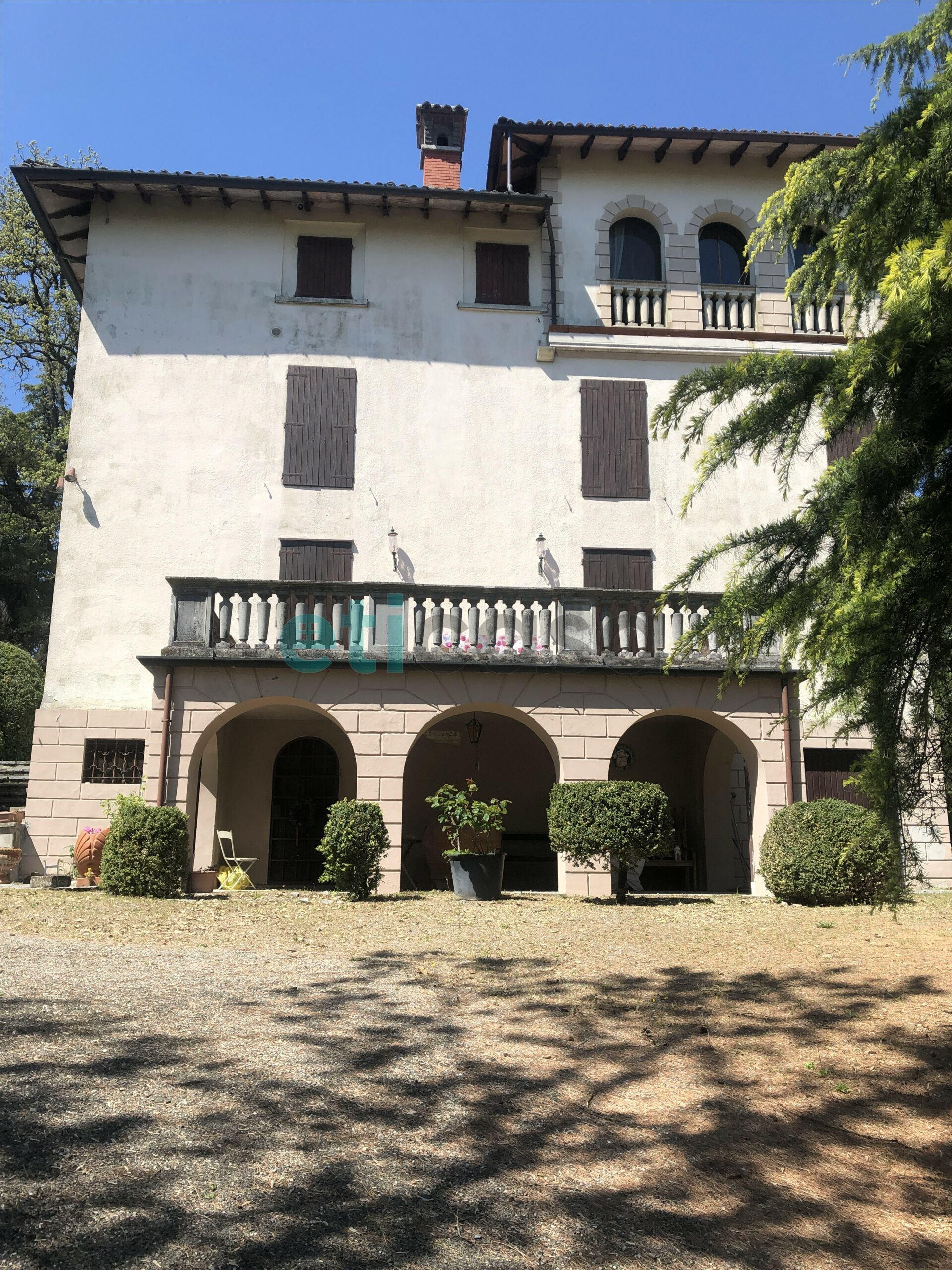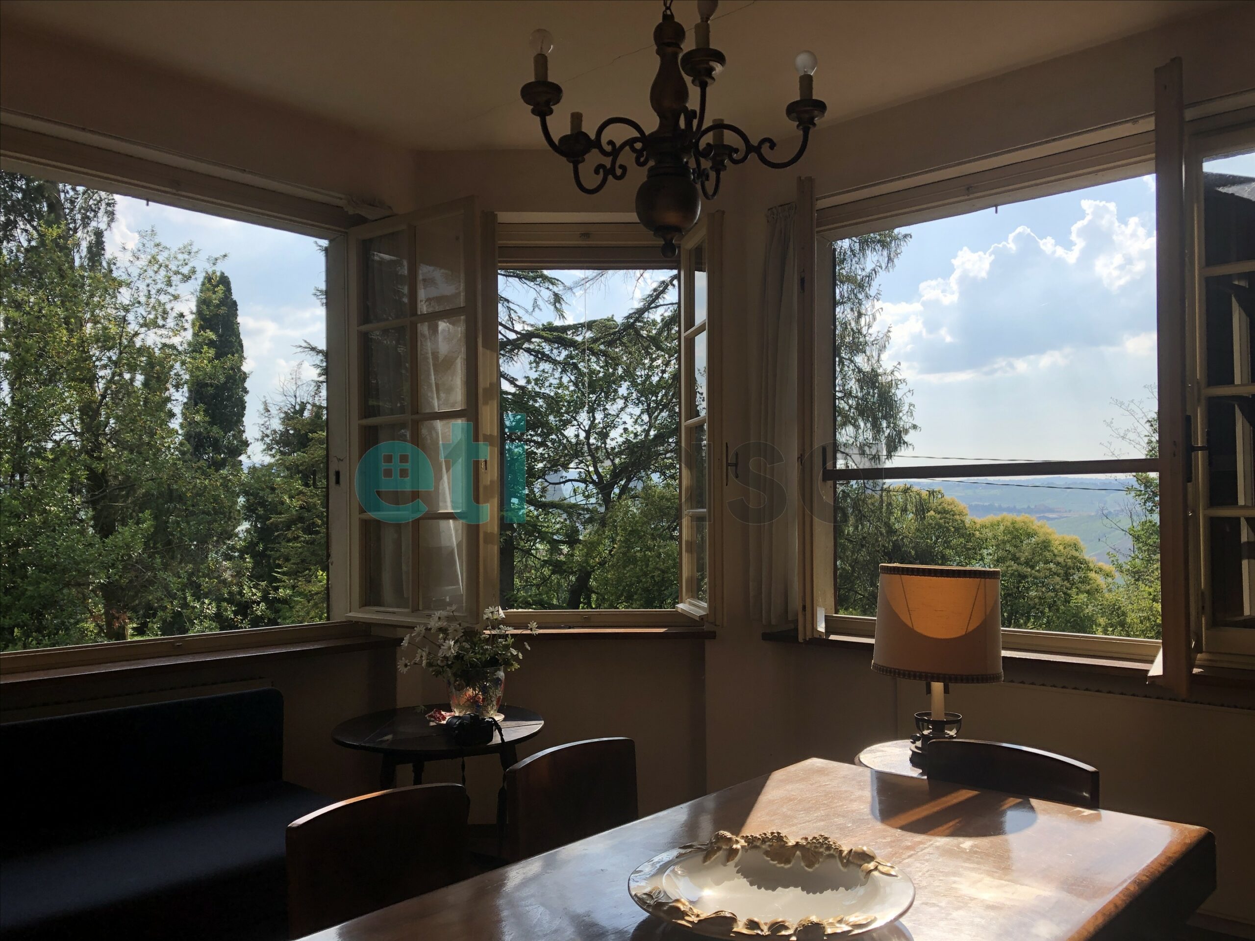 L’edificio, nato come antica posta di cavalli, conserva un’aura storica che dialoga con gli oltre 700 mq di superficie distribuiti su quattro livelli. Intorno, più di 5.600 mq di parco con alberi imponenti e un punto panoramico naturale che domina la valle.