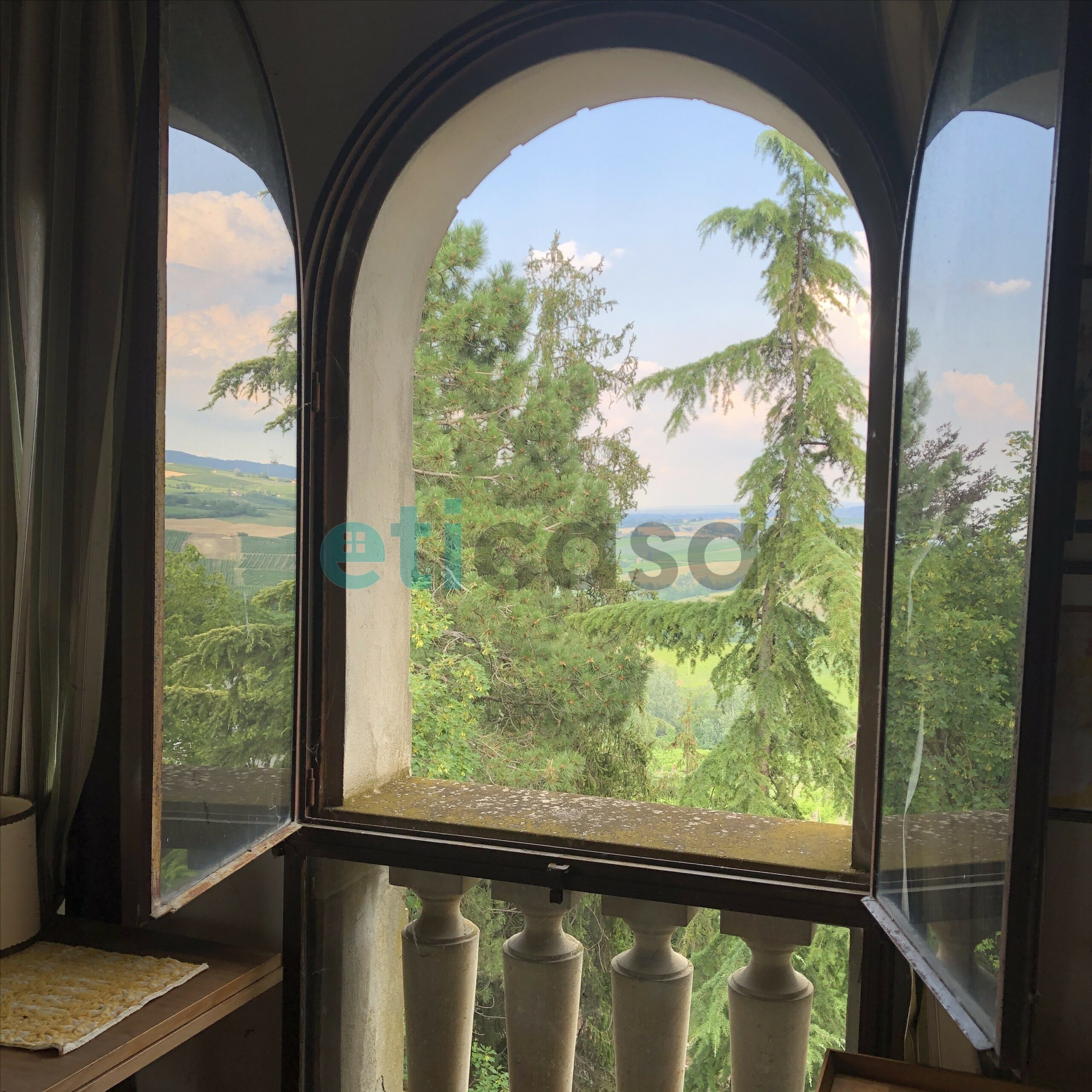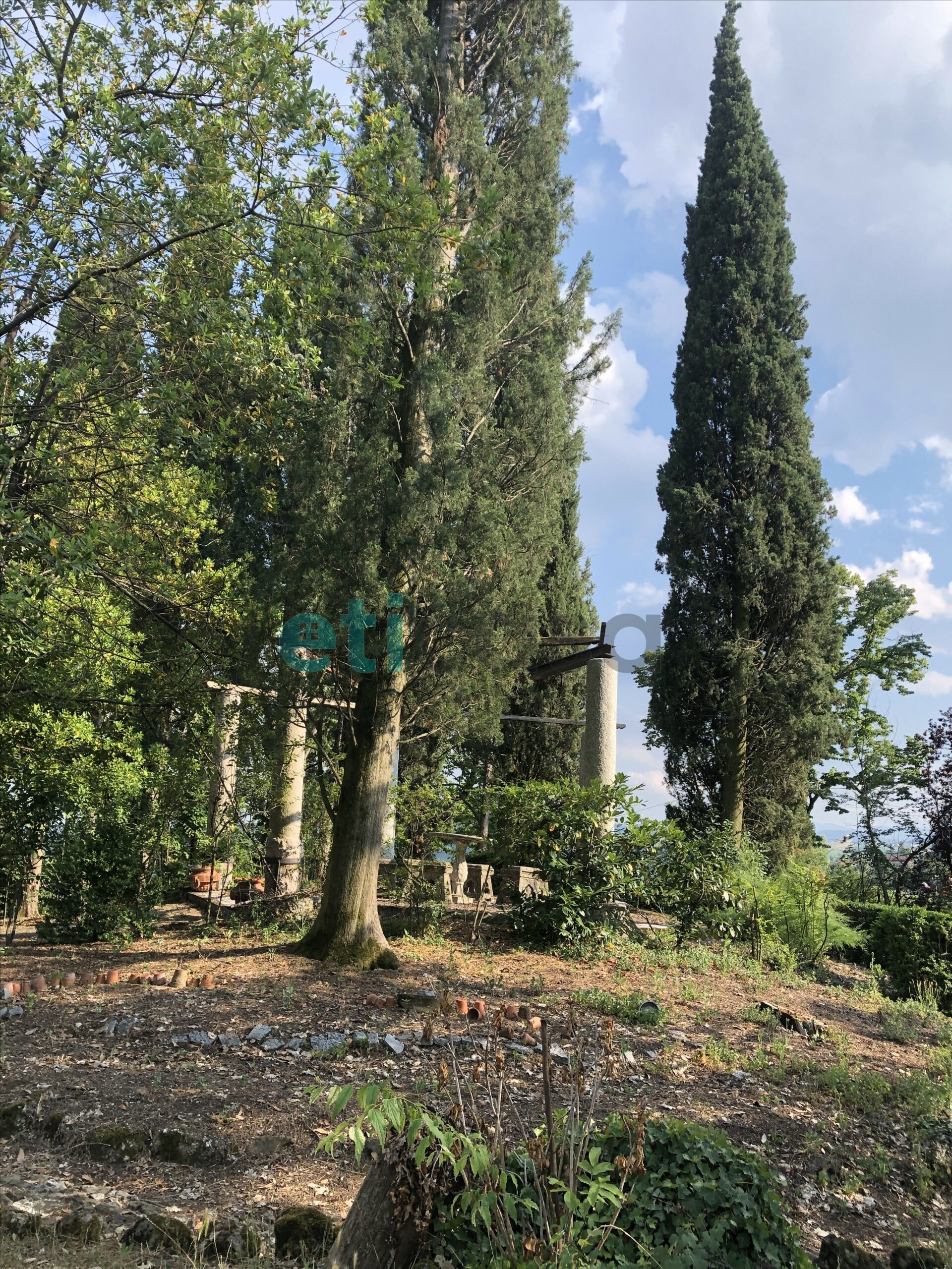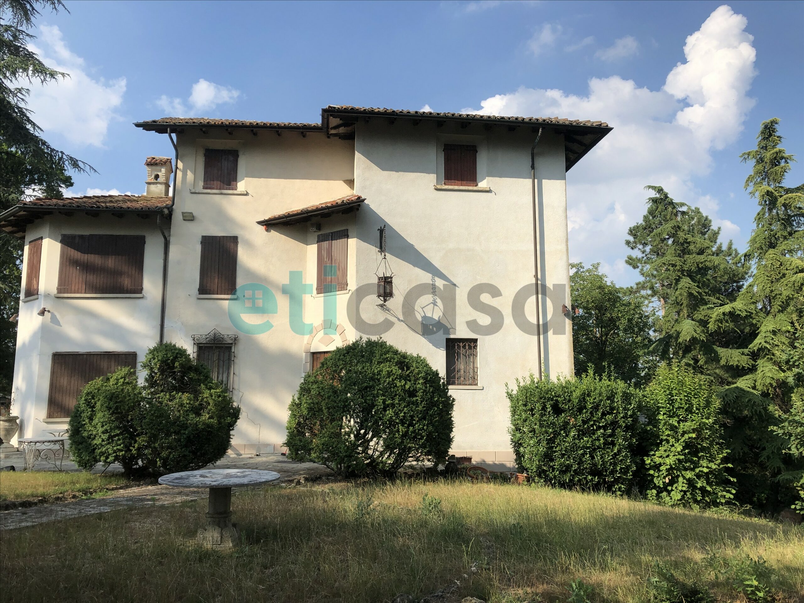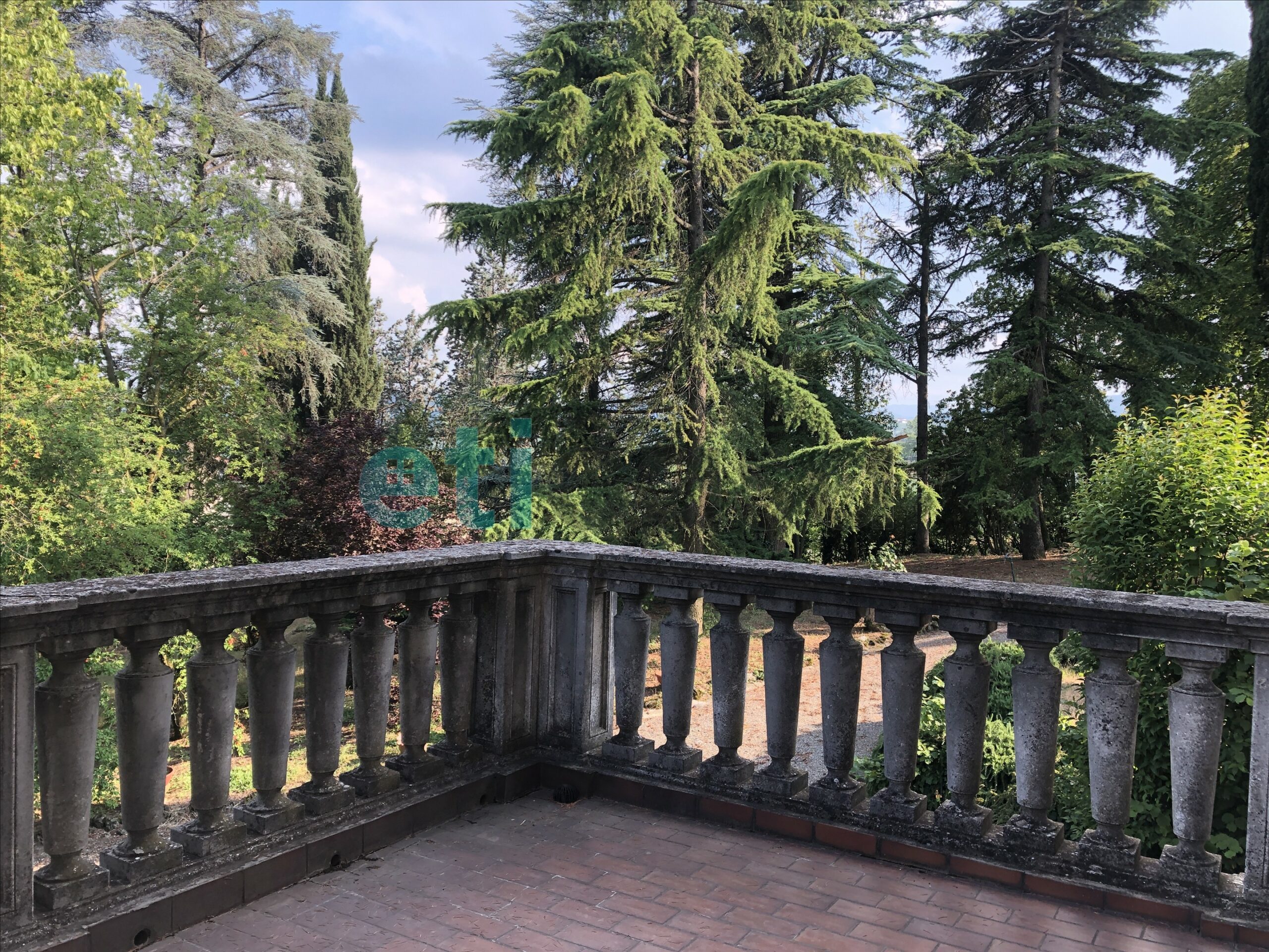 L’edificio, nato come antica posta di cavalli, conserva un’aura storica che dialoga con gli oltre 700 mq di superficie distribuiti su quattro livelli. Intorno, più di 5.600 mq di parco con alberi imponenti e un punto panoramico naturale che domina la valle.