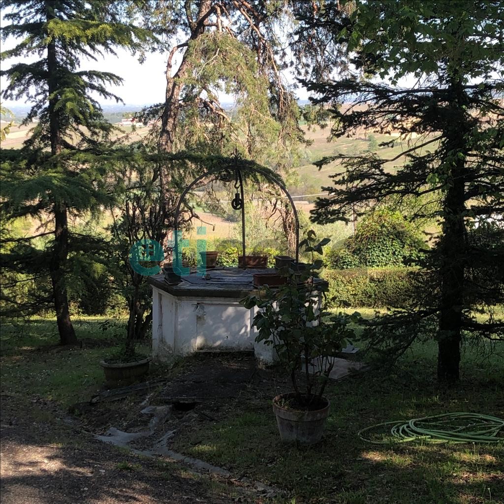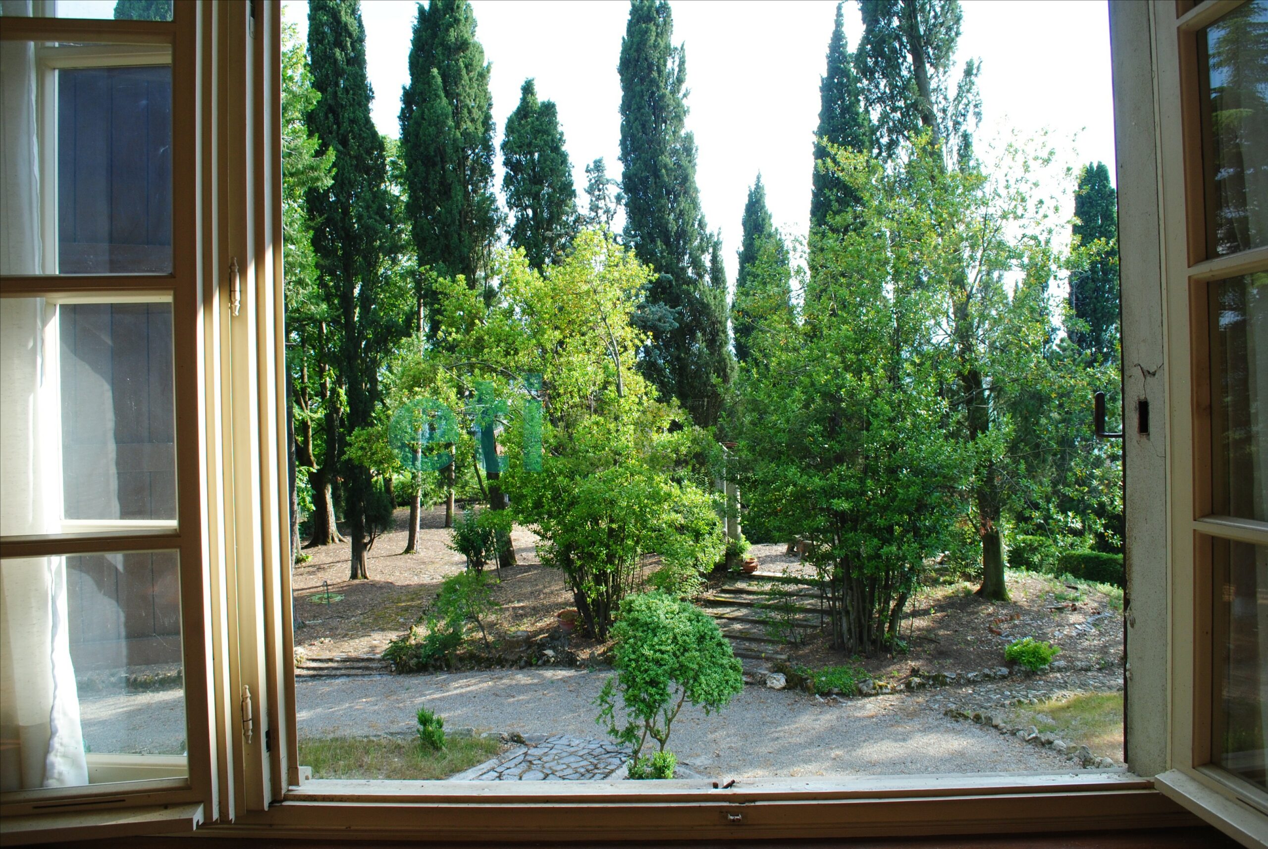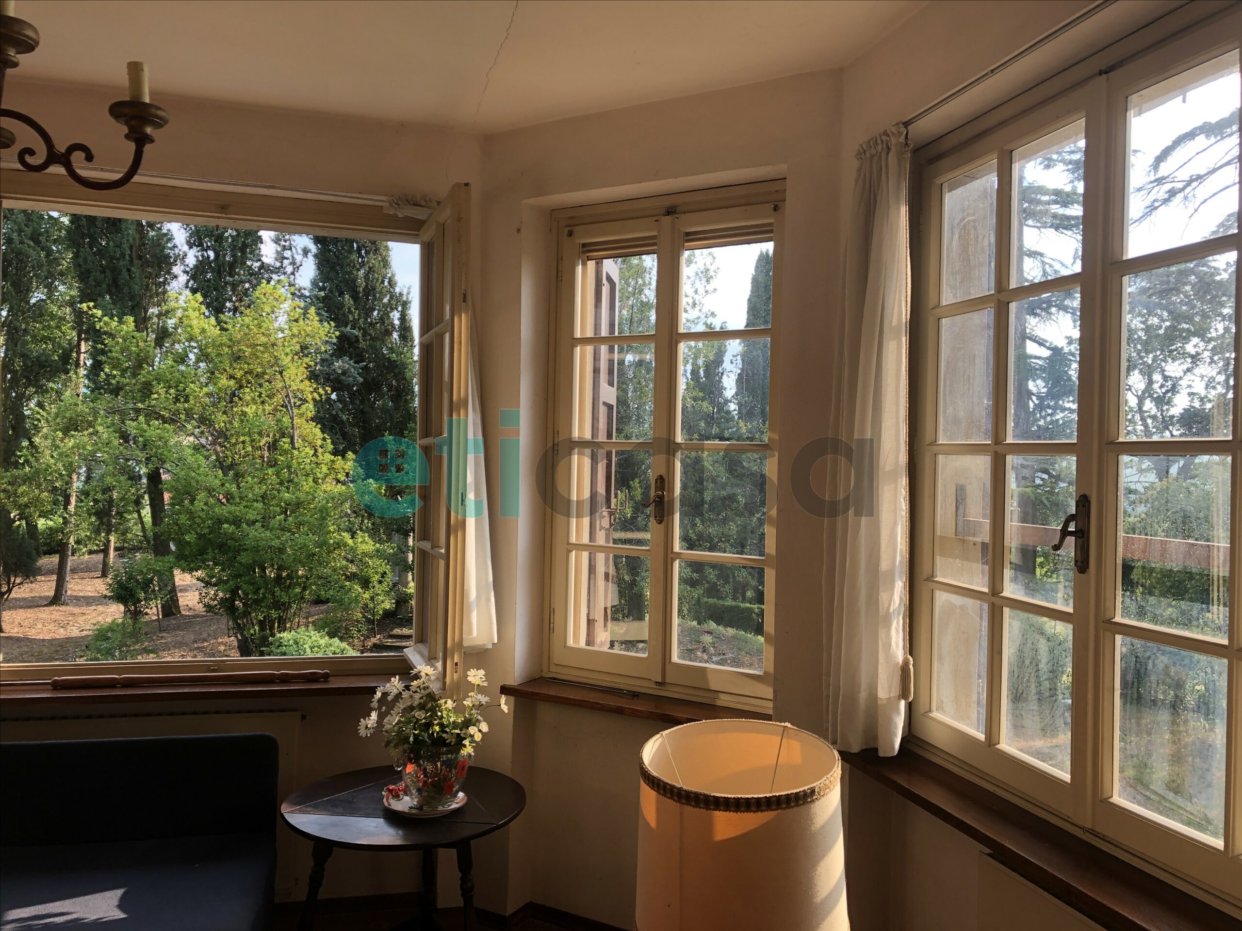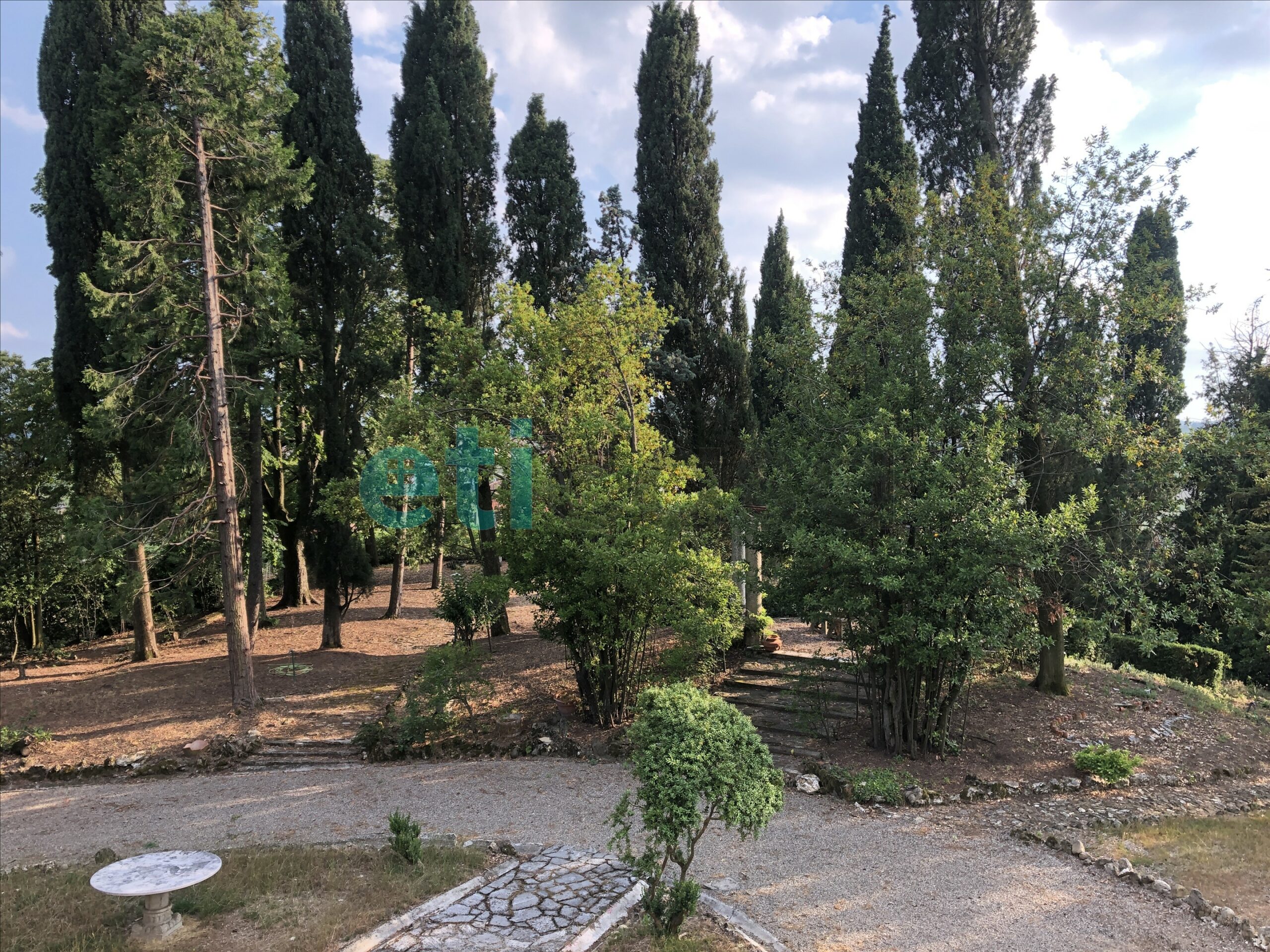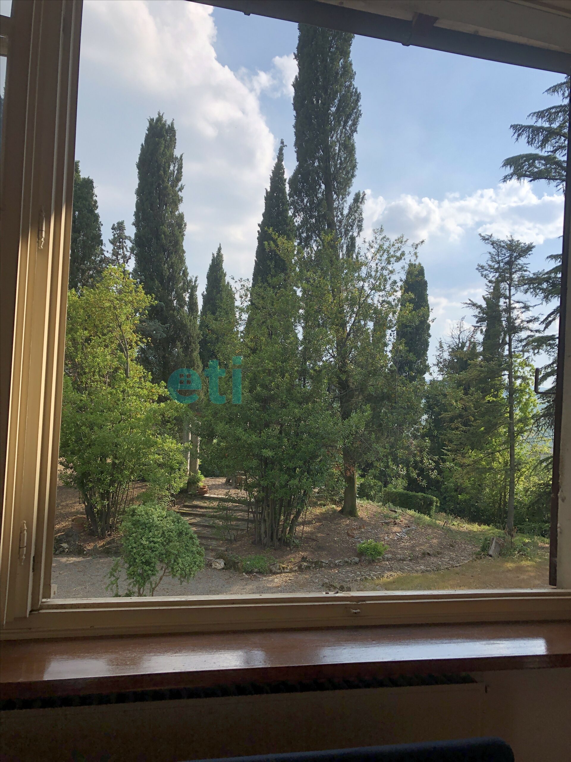 L’edificio, nato come antica posta di cavalli, conserva un’aura storica che dialoga con gli oltre 700 mq di superficie distribuiti su quattro livelli. Intorno, più di 5.600 mq di parco con alberi imponenti e un punto panoramico naturale che domina la valle.