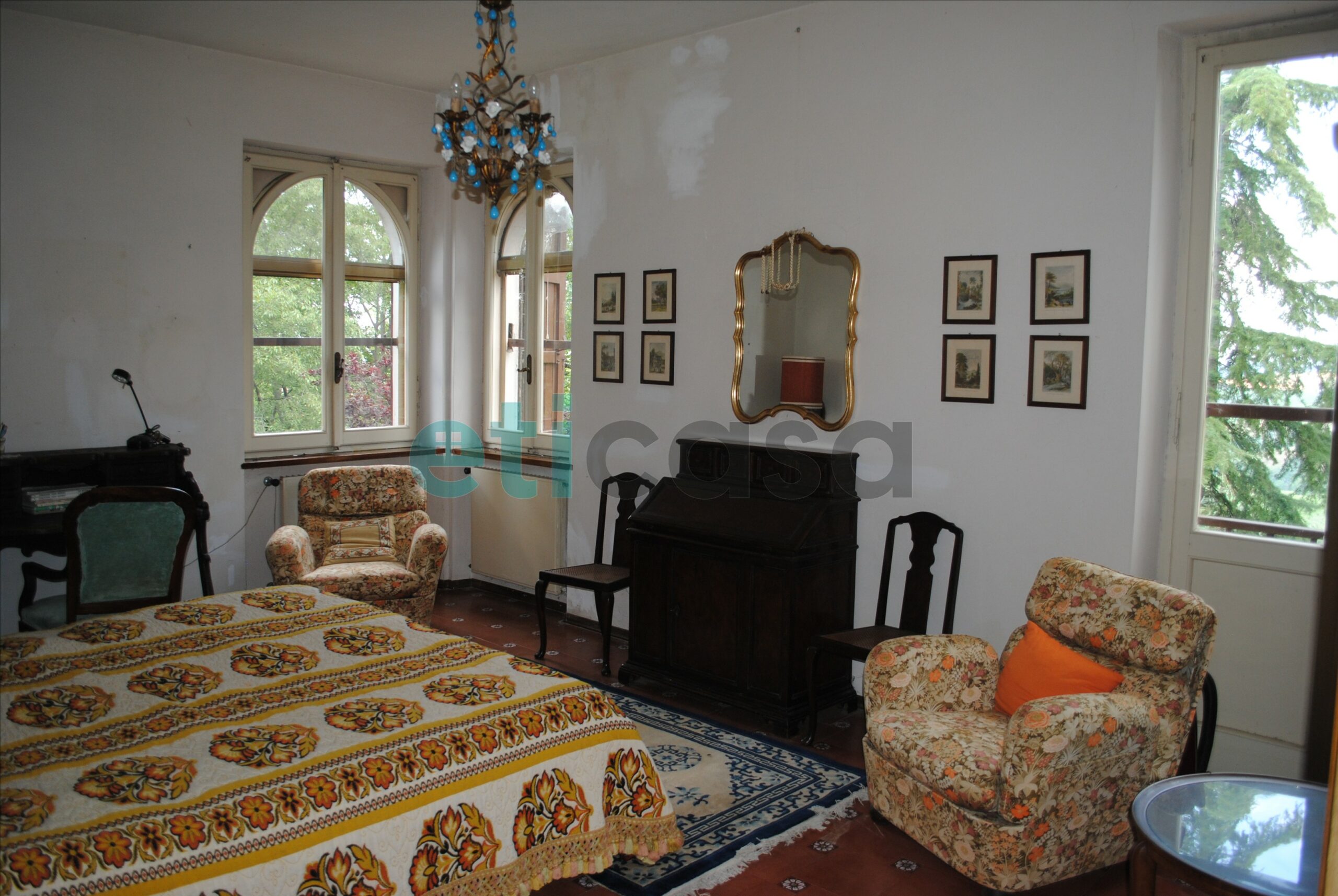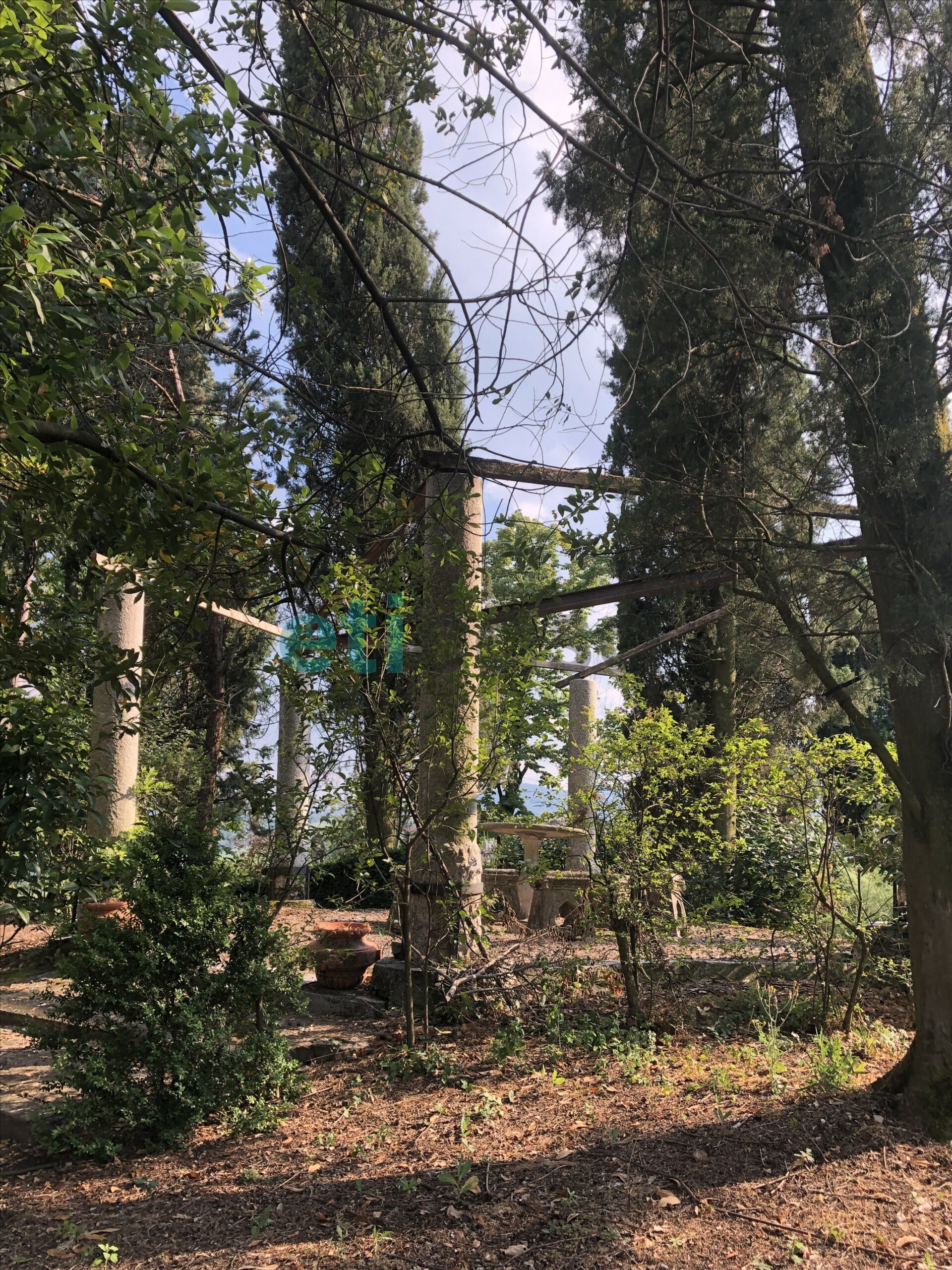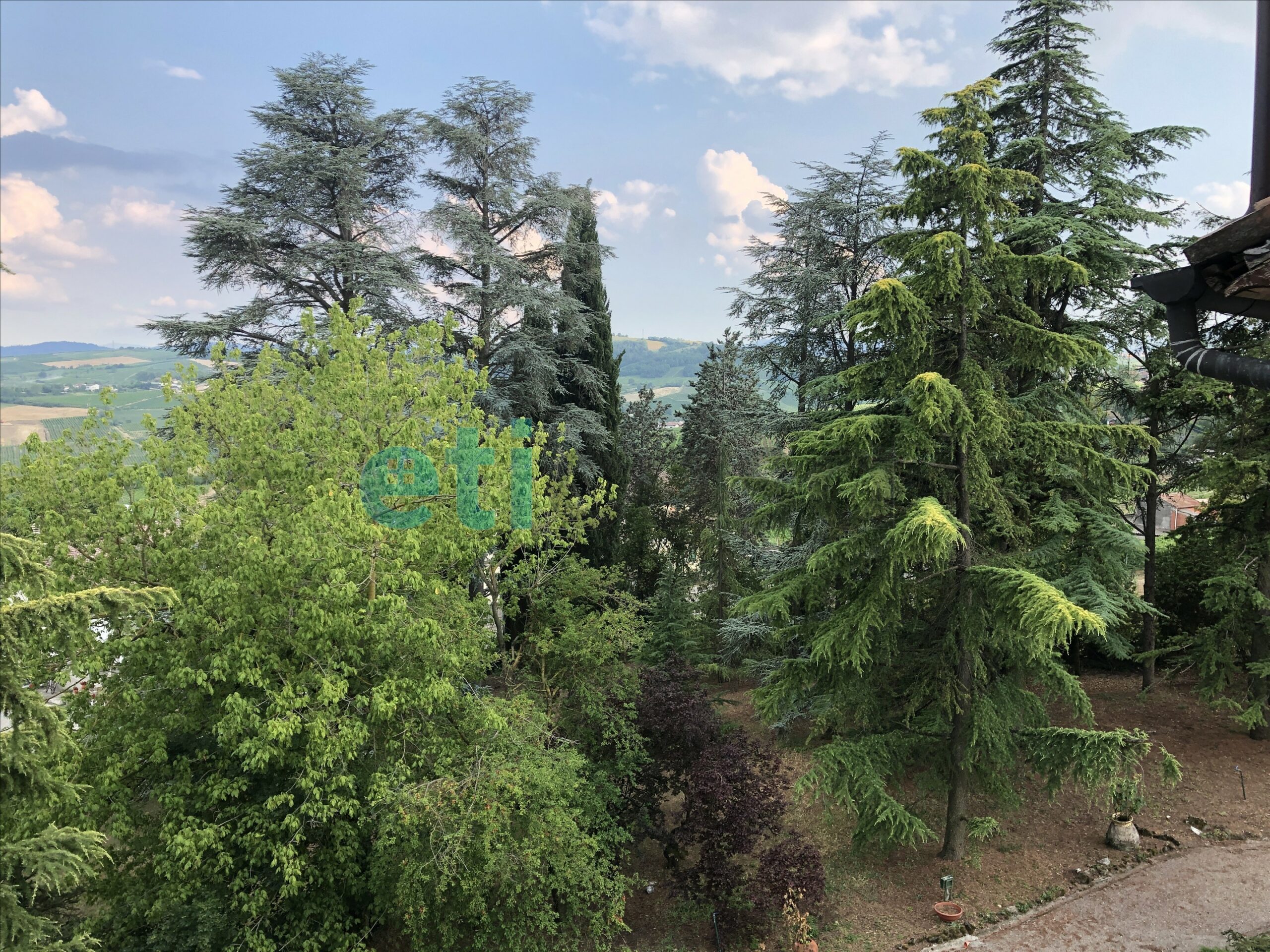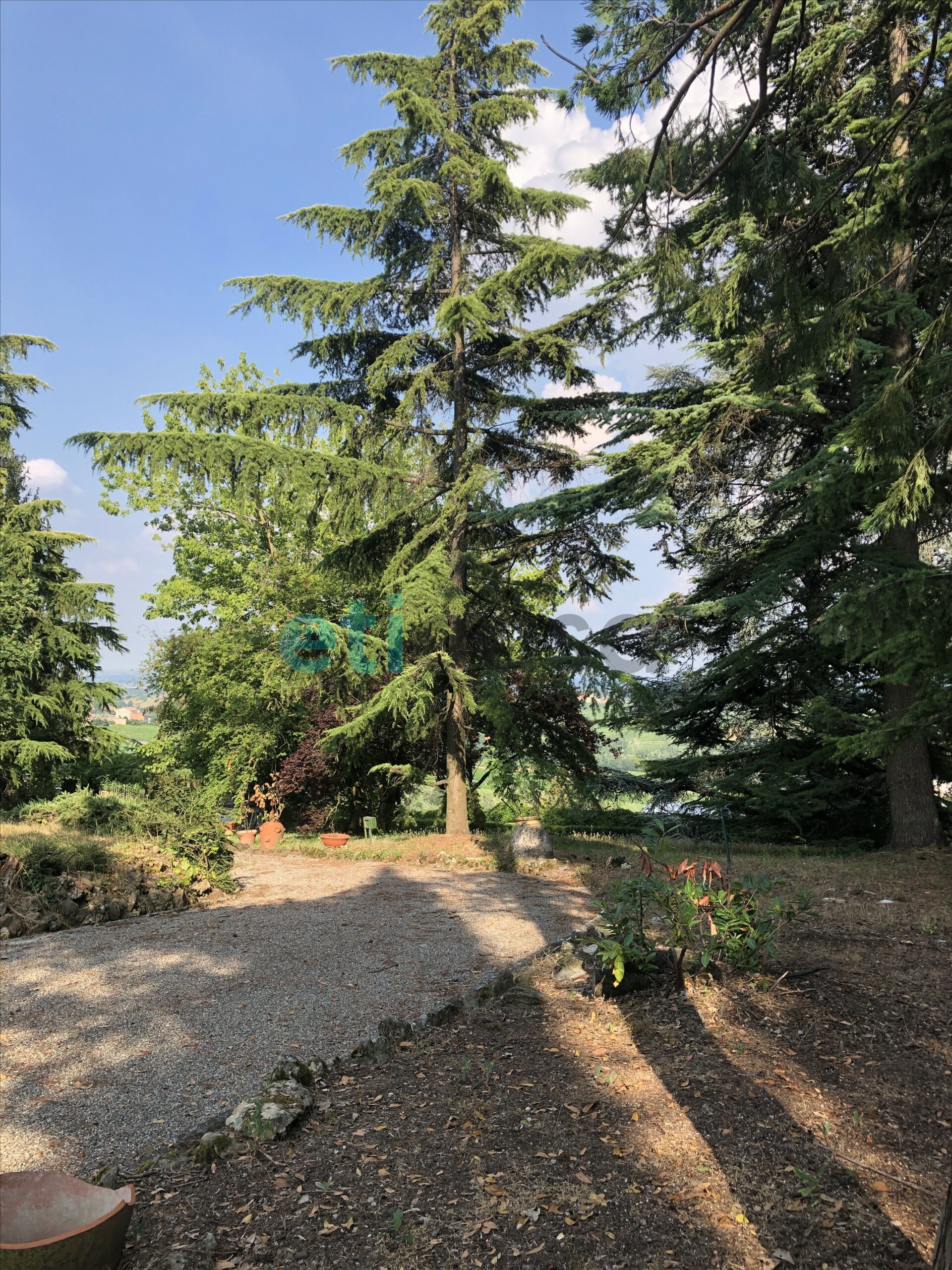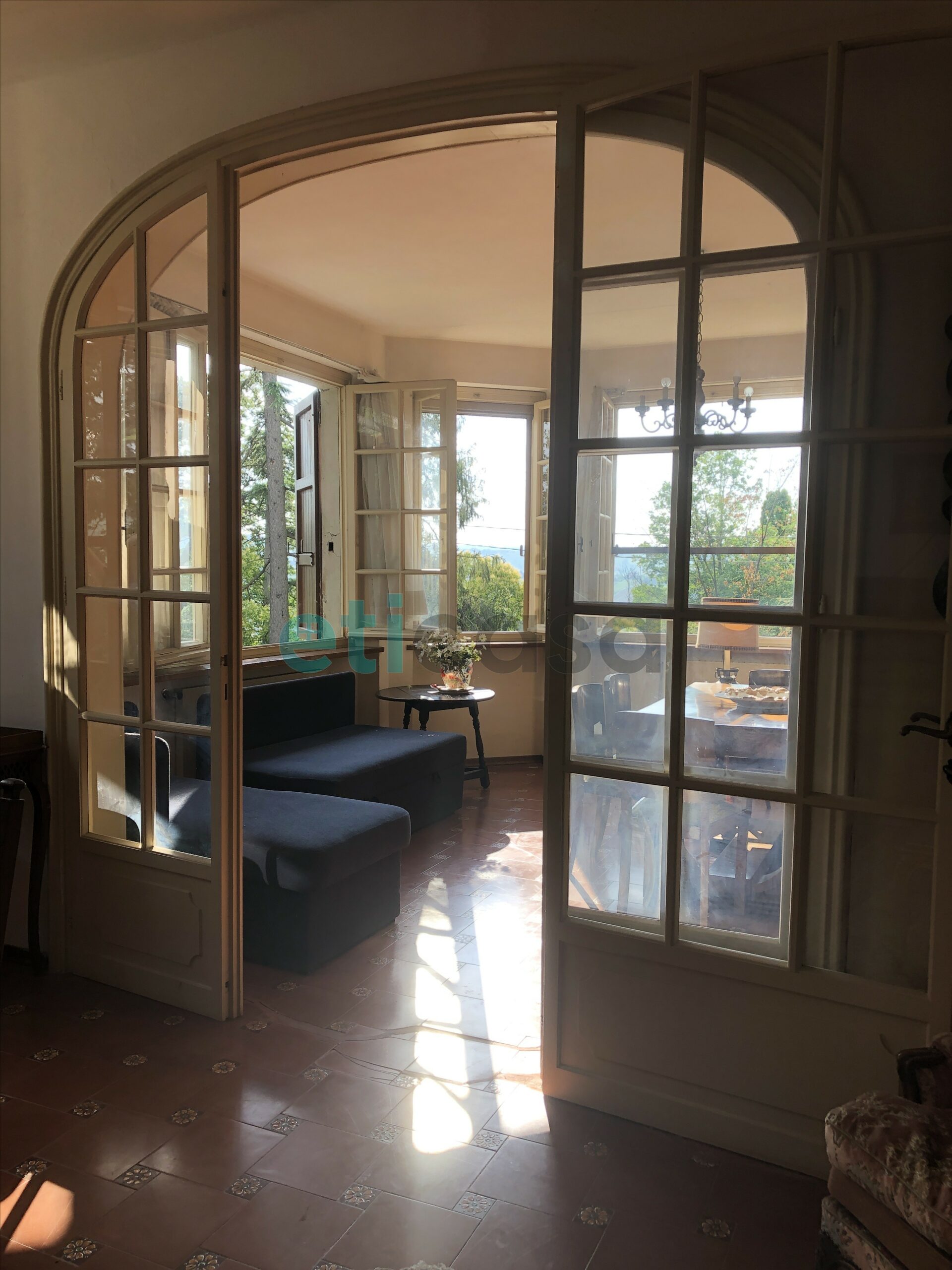 L’edificio, nato come antica posta di cavalli, conserva un’aura storica che dialoga con gli oltre 700 mq di superficie distribuiti su quattro livelli. Intorno, più di 5.600 mq di parco con alberi imponenti e un punto panoramico naturale che domina la valle.