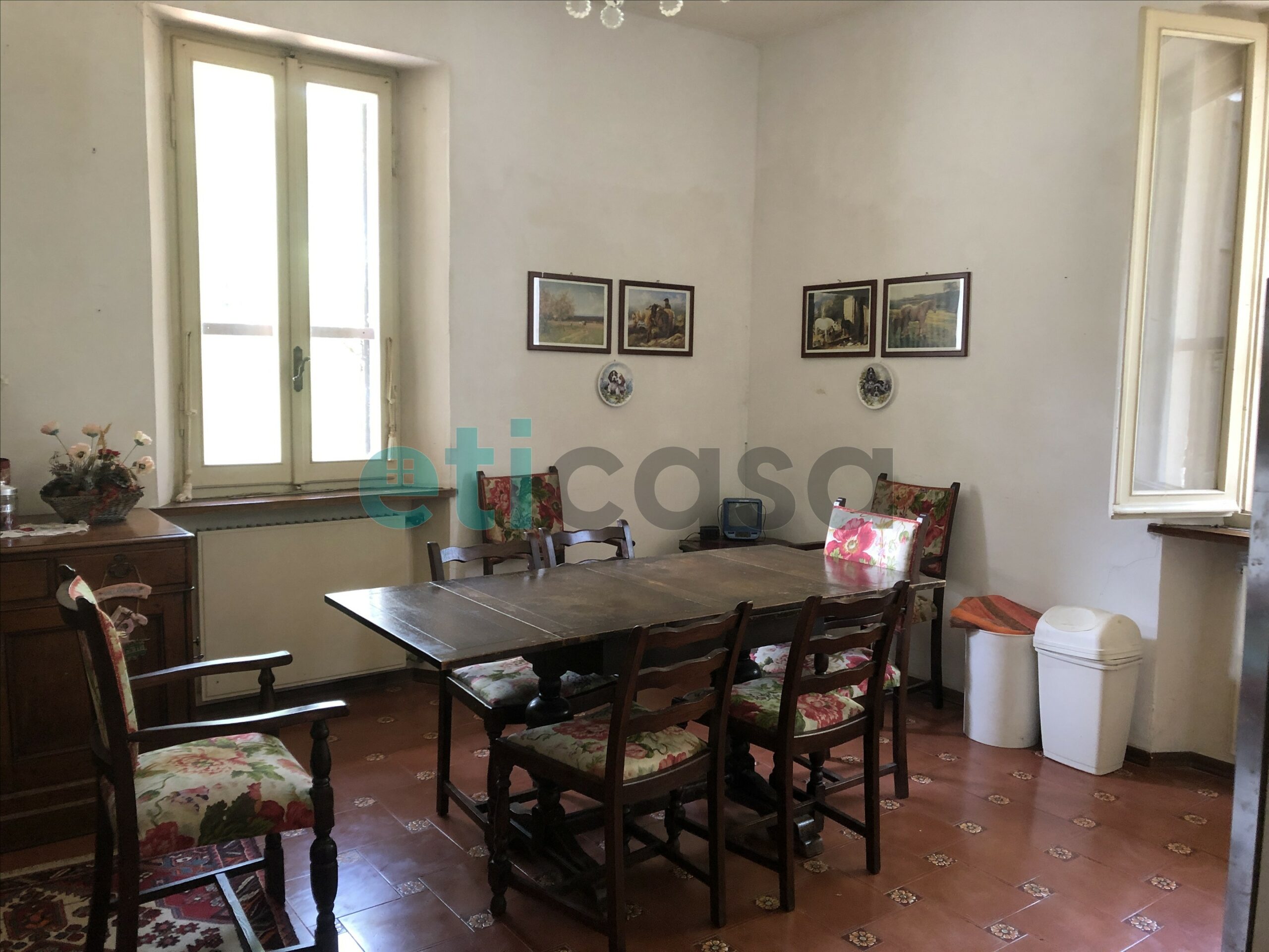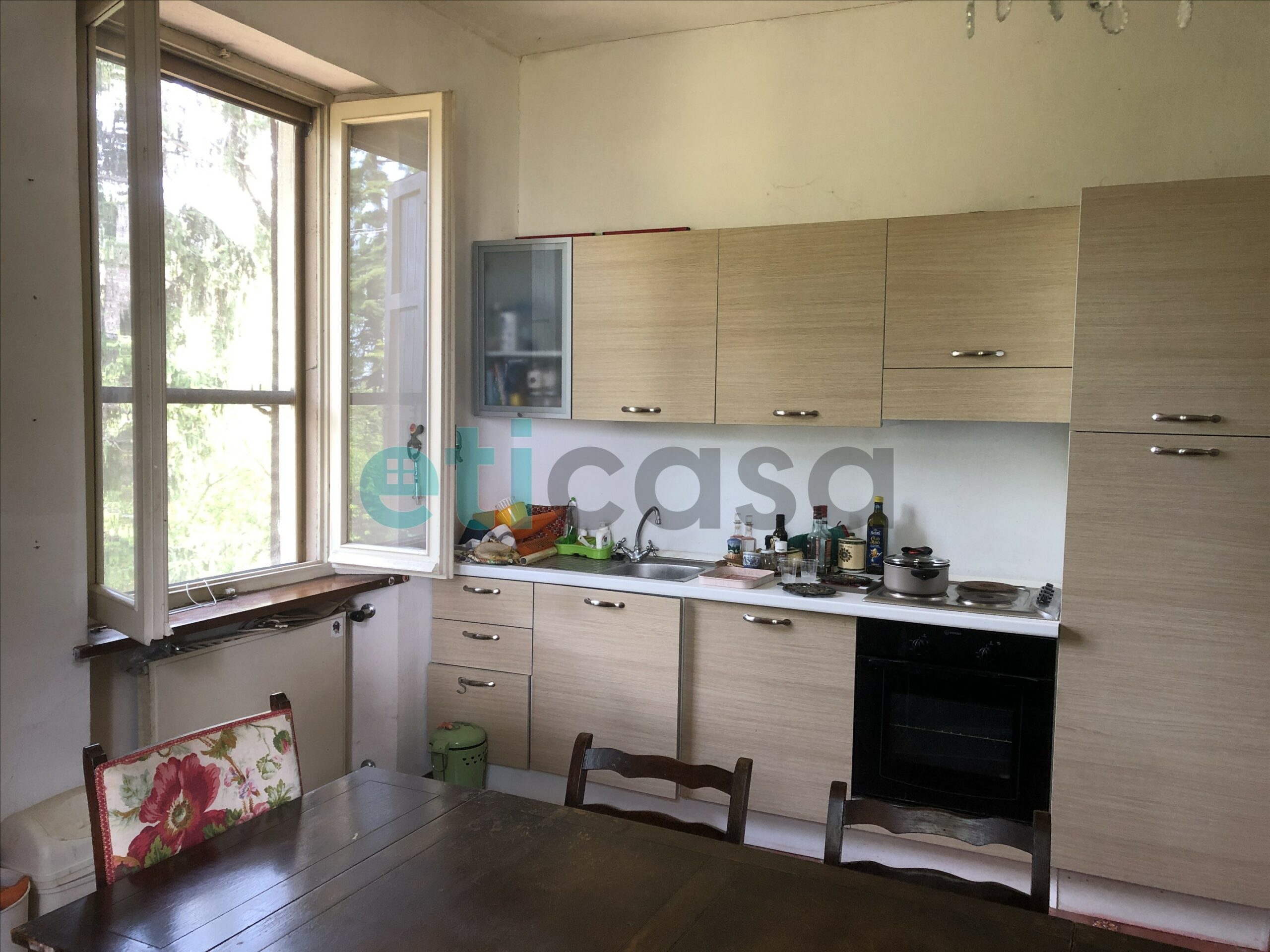 Gli ambienti interni si aprono già dal piano terra con spazi ampi e conviviali: l’ingresso accede a due saloni doppi — uno dei quali affacciato su un grande terrazzo — oltre a una cucina dalle dimensioni importanti con ingresso autonomo e a un servizio.